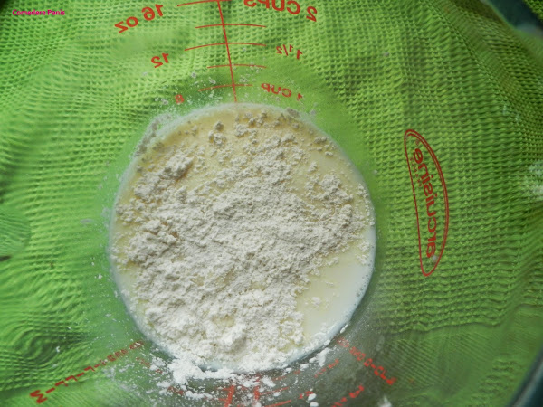 En un recipiente aparte colocamos 250 ml. de leche un sobre de cuajada, disolvemos bien la cuajada.
