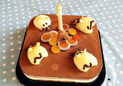 No en serio es un cuento muy chulo para niños pequeños porque se imitan sonidos y se repiten rutinas. La moraleja no está muy clara ¿que el silencio es el mejor compañero? ¿que la mejor pareja es la de la misma especie? De hecho hay alguna versión en la que la ratita se casa con el gato y en la noche de bodas se la come. Un poco cruel... En fin, dejando aparte el cuento, vamos a la parte culinaria. decidí hacer mis ratoncitos en una tarta clásica: la tres chocolates.