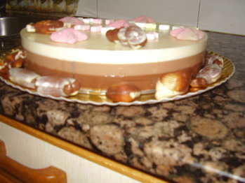 Después repetimos el proceso con el chocolate blanco, dejamos enfriar, esta tarta es mejor hacerla de un día para otro, y decoramos a nuestro gusto.
