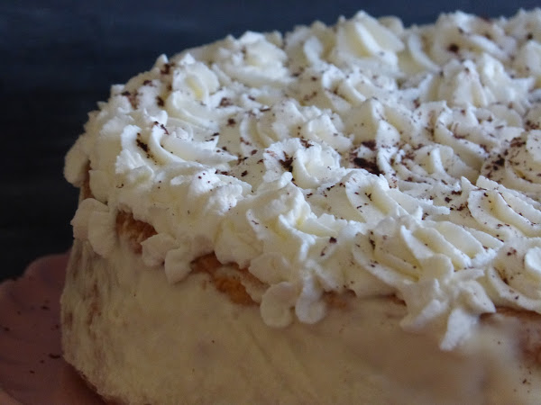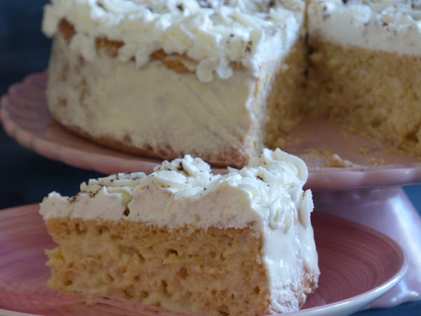 Yo he montado un poquito de nata (crema de leche) con azúcar y lo he decorado por encima como mejor me ha parecido, pero es un bizcocho tan rico que no necesita de ningún adorno.