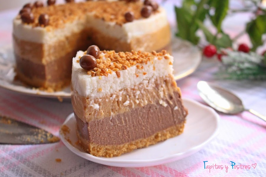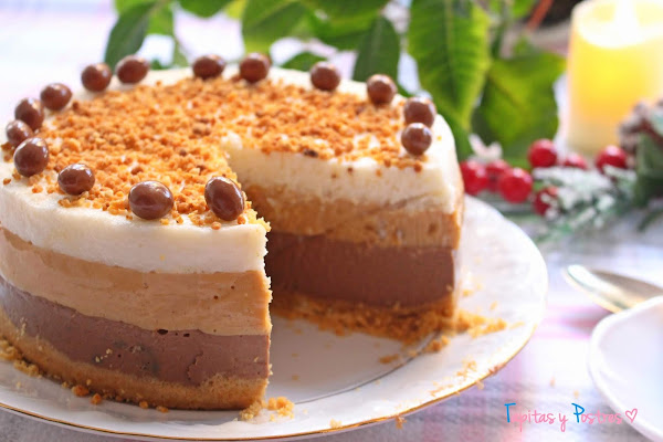 Ahora que estamos en plenas fiestas navideñas se me ha ocurrido transformarla en una tarta de tres turrones.