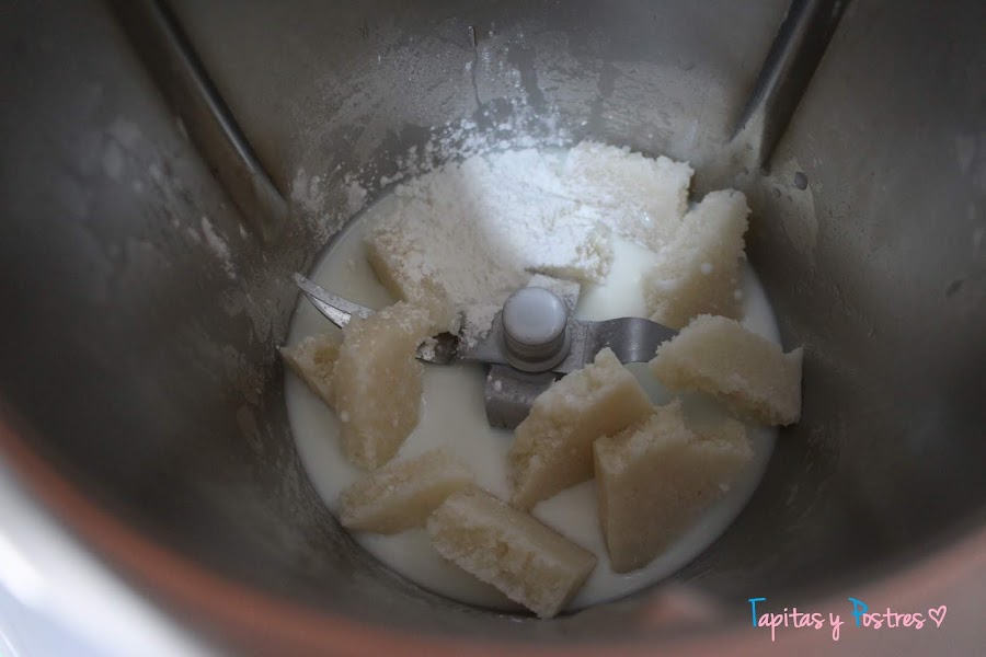 Mezclamos con la leche y la cuajada. Cocinamos.