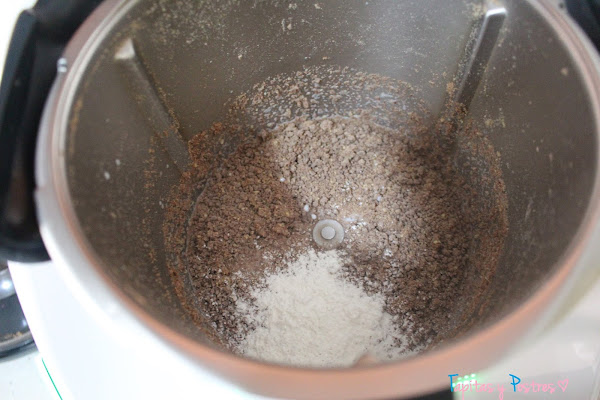 Comenzamos preparando la base. Vamos a triturar las galletas en la thermomix 15 segundos a velocidad 8-10.