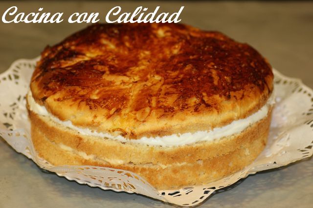 Cortamos el Brioche por la mitad y rellenamos con la crema Mousseline. En mi caso lo rellené en tres partes, una de ellas, iba con crema mousseline, y la otra con nata montada (crema de leche) (a petición de la familia). Volvemos a refrigerar, y lista para comer. Muy rica.