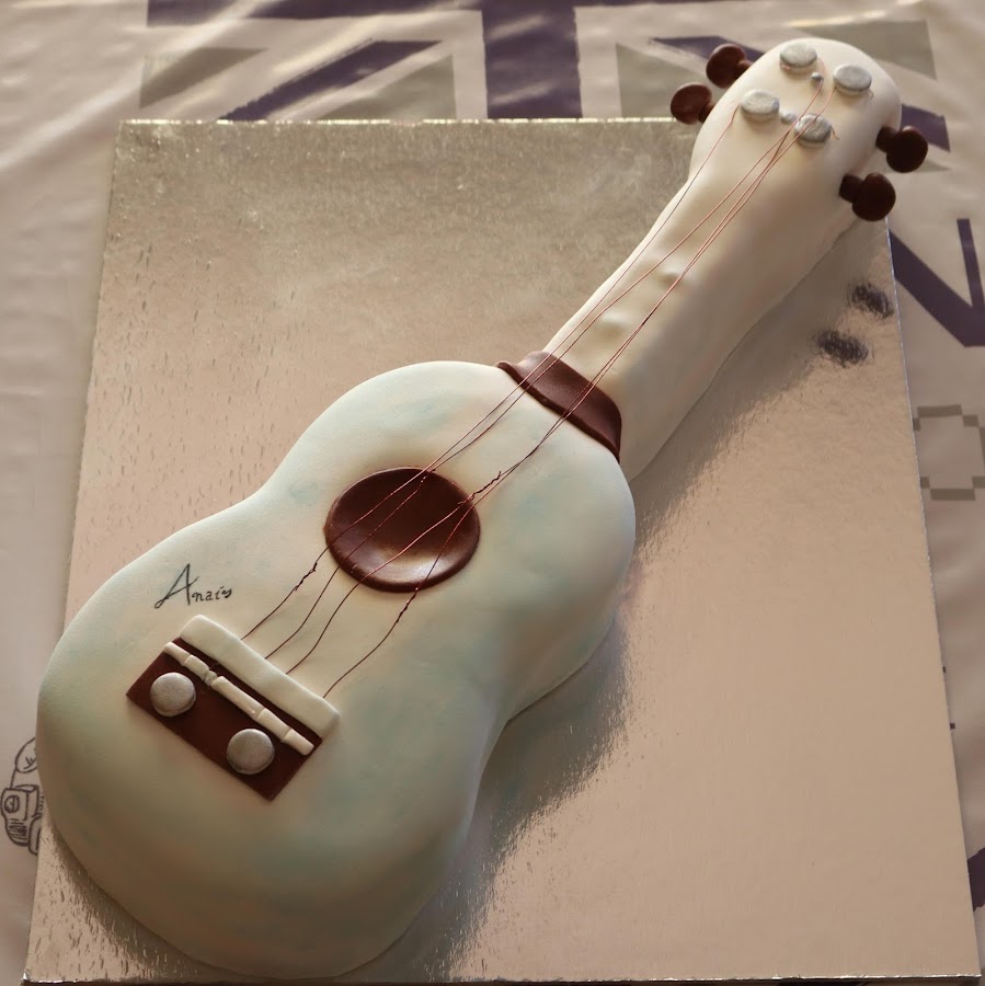Esta tarta la hice para una chica que cumplia 17 años y que mejor regalo de sus amigas que una tarta de lo que le gusta a ella el Ukelele.
