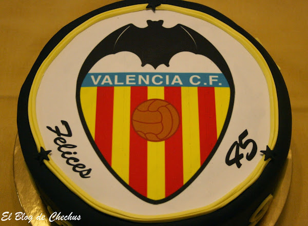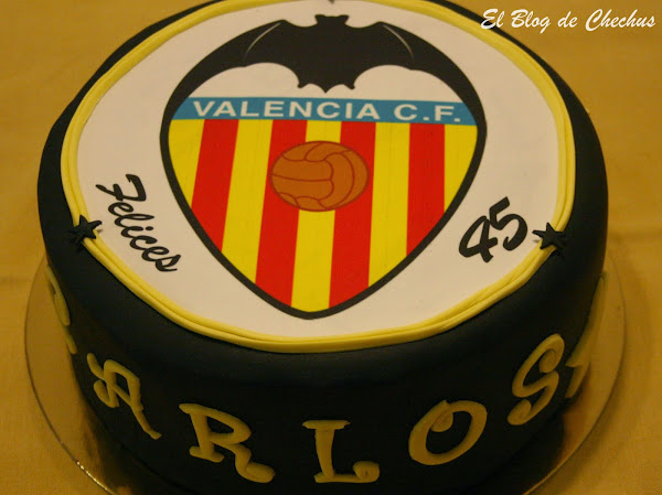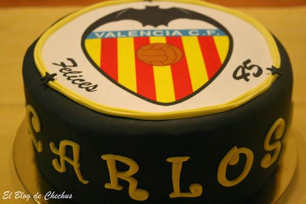Esta tarta me la pidió Irene para su marido que cumplía 45 años, y como imaginaréis, es un gran seguidor del Valencia CF. No fue la única tarta que le hice, ya que su hijo le tenía preparada otra, que ya os contaré en la siguiente entrada.