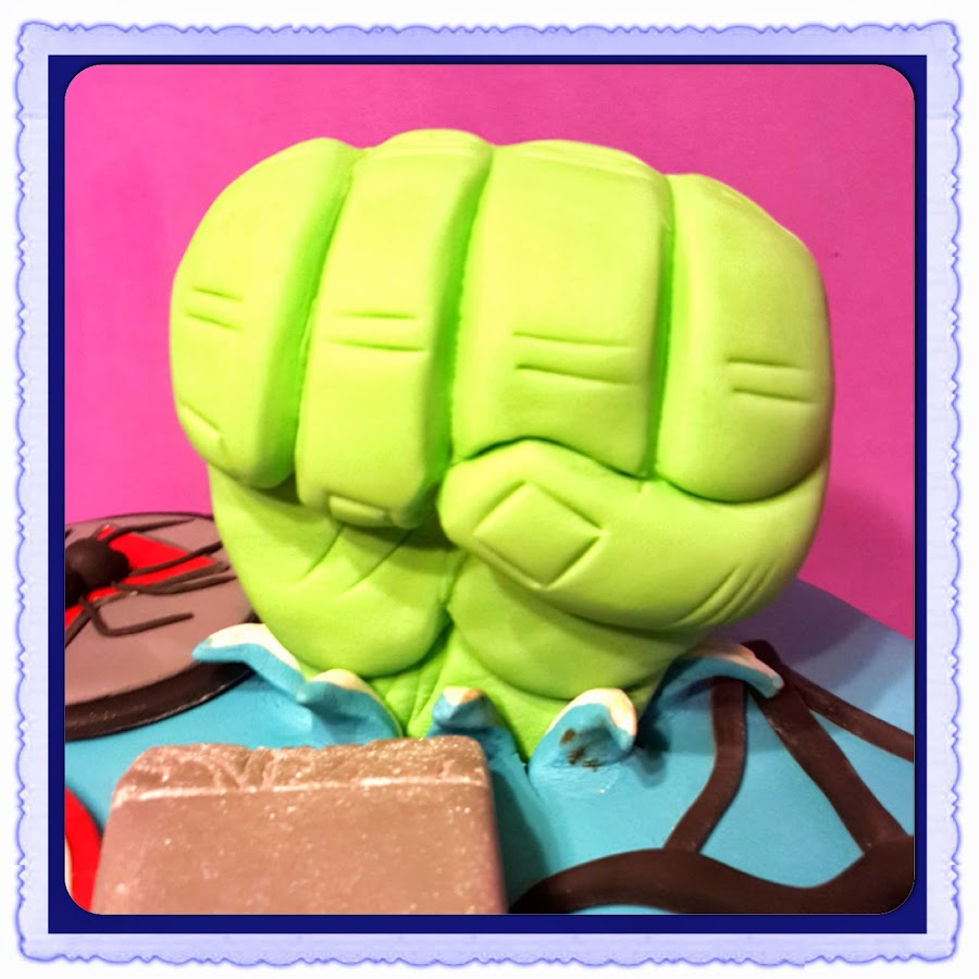 Hicimos el puño de Hulk todo de fondant un par de días antes para que se secara y poder ponerlo sin deformarlo.
