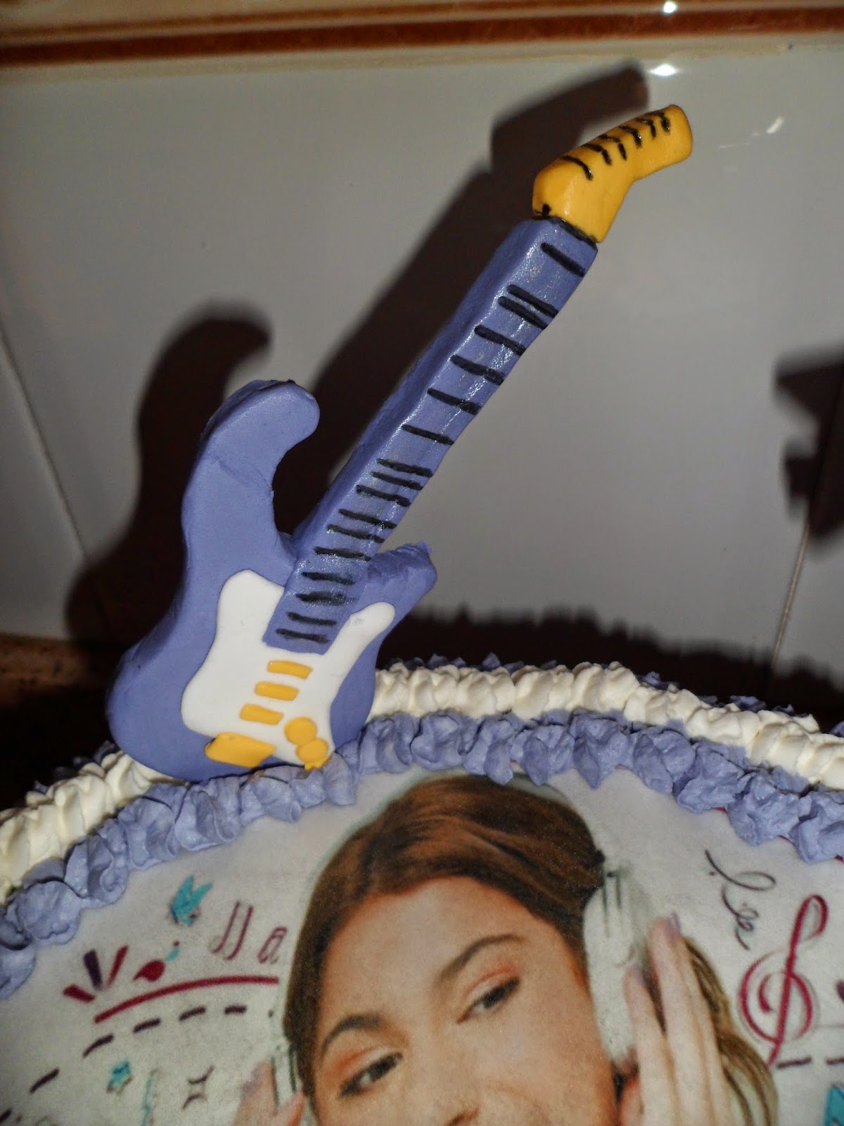 Hoy os traigo no una, sino dos tartas que hice para unas niñas que están locas con la serie Violetta, la primera la hice para Sofía (la sobrina de mi hermana), que es un encanto de niña y una apasionada de esta actriz y cantante (bueno ella pudo disfrutar de su concierto en Madrid!). Realicé la tarta con un bizcocho de yogur y mucha Nutella, la Nutella siempre es un éxito asegurado y esta vez no fue diferente la cosa, ya que la tarta voló entre los niños (y los no tan niños). Sin duda alguna la foto de Violetta era una pasada, aunque a ella le encantó la guitarra y no quería que nadie la tocase. Os dejo unas fotos para que veáis el resultado y os hagáis una idea de por qué no quería compartir su guitarra....