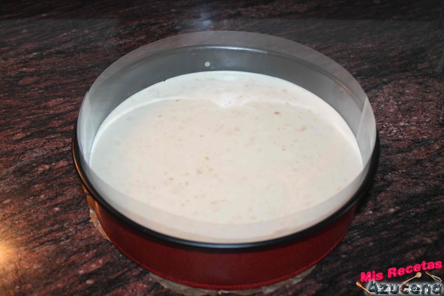 Sacamos la base de la nevera y le añadimos el relleno, volvemos a introducir en la nevera y la dejaremos reposar unas tres horas.