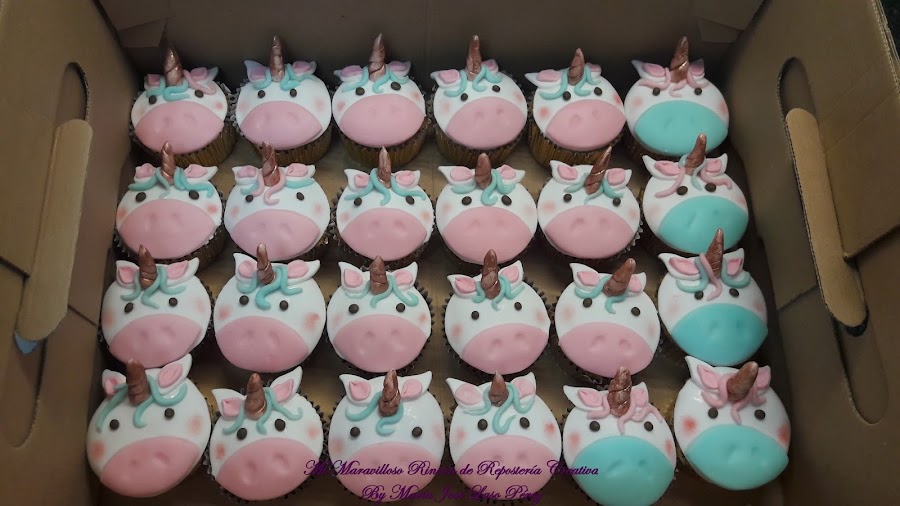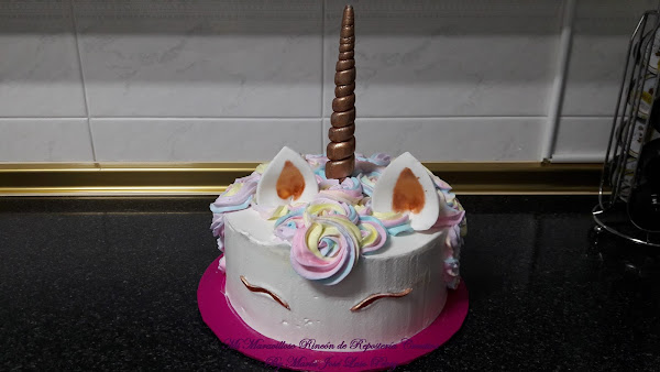 El bizcocho era de vainilla y el relleno de fresa. Las orejas, ojos y cuerno eran de fondant.