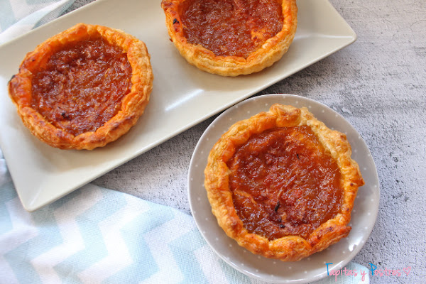 Este entrante es una prueba, un poco de sobrasada y de cebolla caramelizada que tenía en la nevera y salieron estas tartaletas que estaban más que buenas.