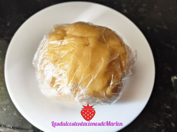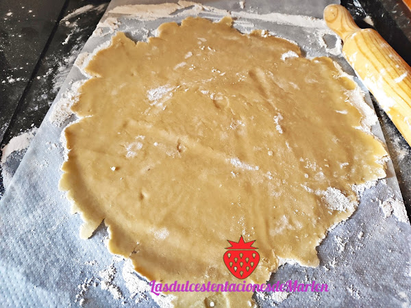 Precalienta el horno a 180 ºC. Espolvorea la mesa de trabajo con harina, pon encima la masa, estírala con el rodillo hasta que tenga unos 5 mm de espesor.