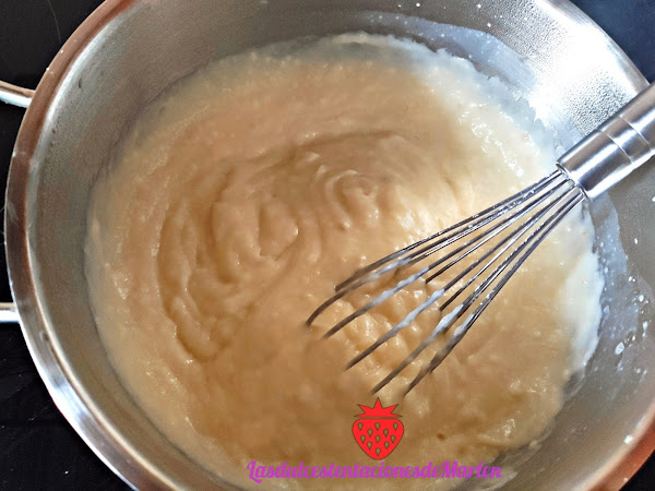 Agrega la leche caliente colada, mezcla y cuece, removiendo hasta que espese.