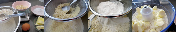 Tamizar la almendra en un bol. Tamizar la harina sobre la almendra.