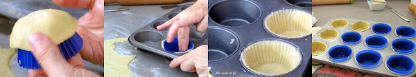 Aquí nos hemos ayudado de unos moldes de silicona para magdalenas, que nos han servido para darles forma y para que durante la cocción no subiera la masa de las tartaletas. Para reforzar este efecto, pinchar la base de las tartaletas con un tenedor.