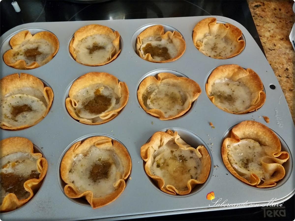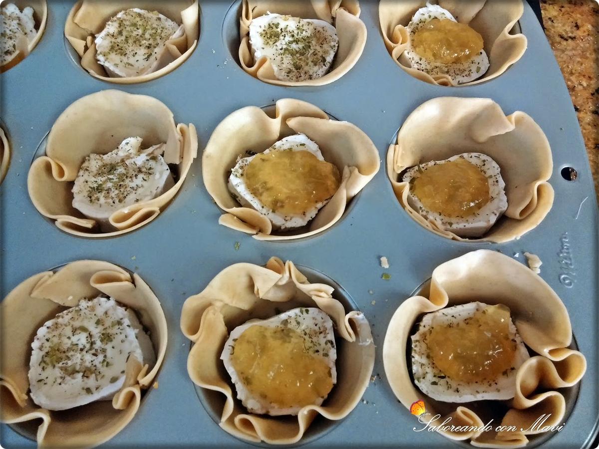 Ahora terminamos con una cucharadita de mermelada y metemos al horno precalentado a 170º hasta que veamos que tienen color. Cuidado no ponerlo fuerte si no se tuestan por arriba y por el fondo quedan a medio hacer!!
