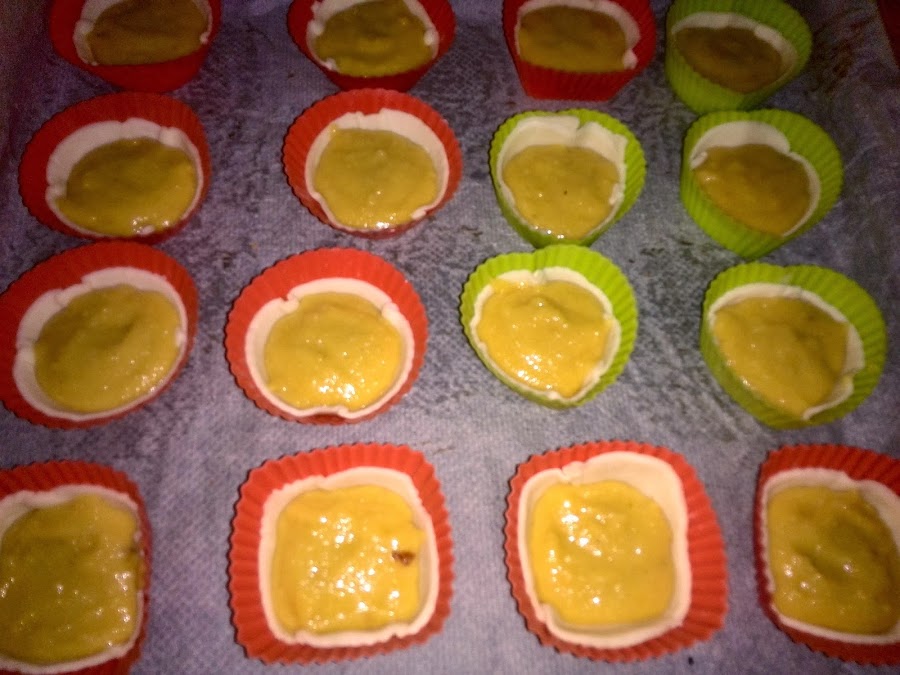 Con esto vamos rellenando las tartaletas, solo unos tres cuartos, pues aunque no lleve levadura, aumenta bastante de volumen.