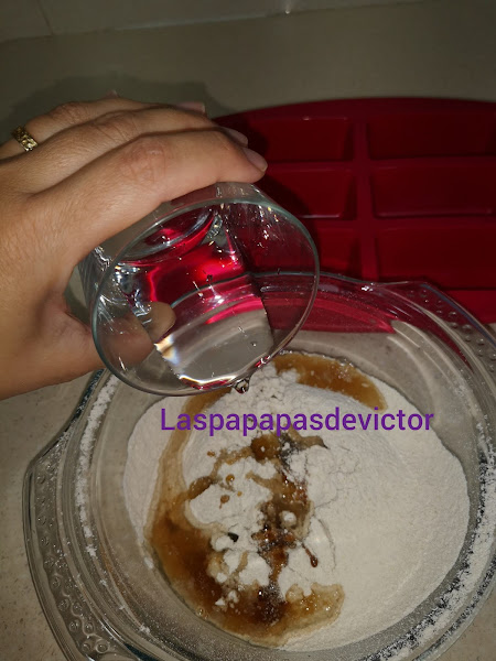 Y por último el agua hay que ir a poquitos e ir amasando, hasta que quede tipo masa de galletas