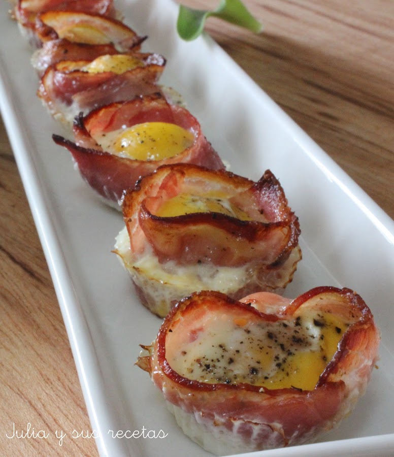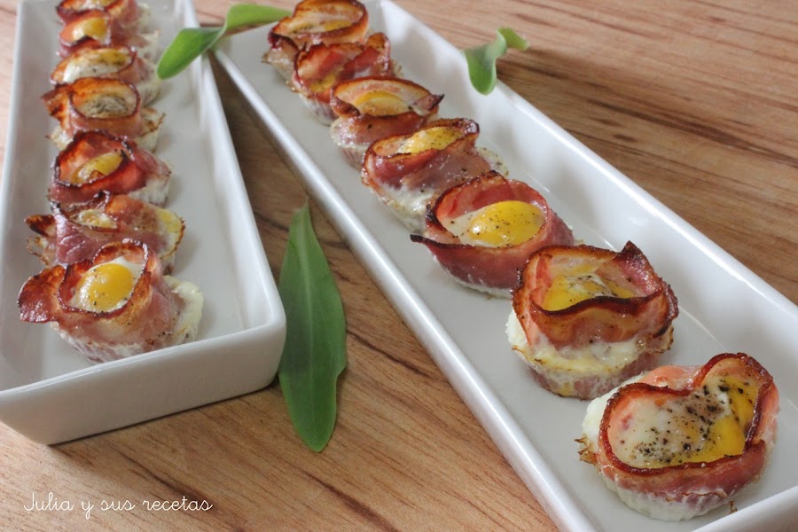Hoy os traigo un aperitivo super sencillo, que está buenísimo y que se hace en muy poco tiempo. Unas tartaletas de bacon con huevo de codorniz.