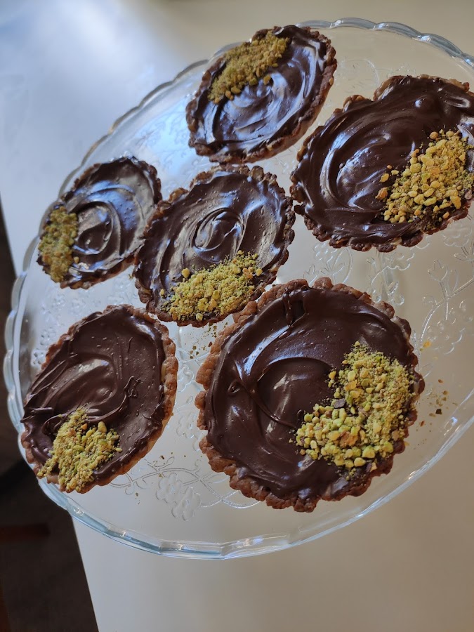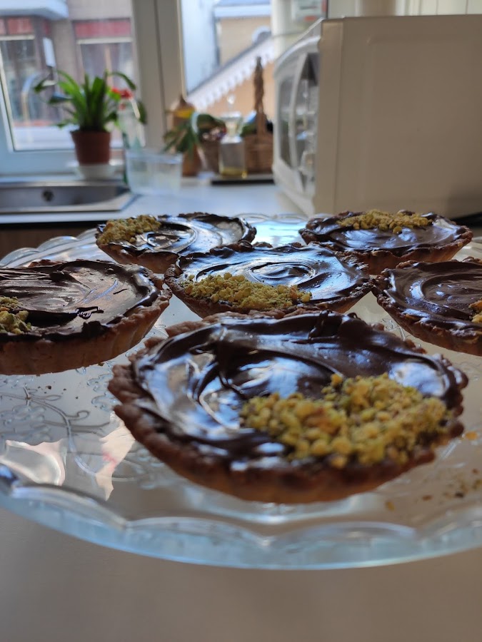 Una vez frío drretimos el chocolate, ponemos una cucharada de crema de cacahuete en la base de la tartaleta y luego agregamos el chocolate negro fundido y dejamos enfriar.