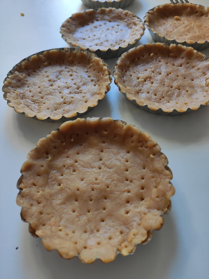 Horneamos unos 20 minutos aproximadamente si es en moldes de tartaletas de 15 a 18 será suficiente a 180º, sacamos del horno y dejamos enfriar.