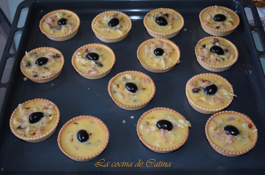 Llenamos las tartaletas y las adornamos con una aceituna.