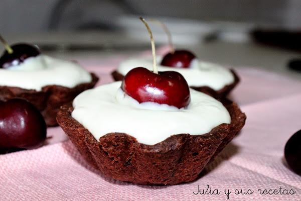Hoy os dejo un bocado exquisito. unas tartaletas de chocolate blanco con cerezas que serán las delicias de todos los comensales.
