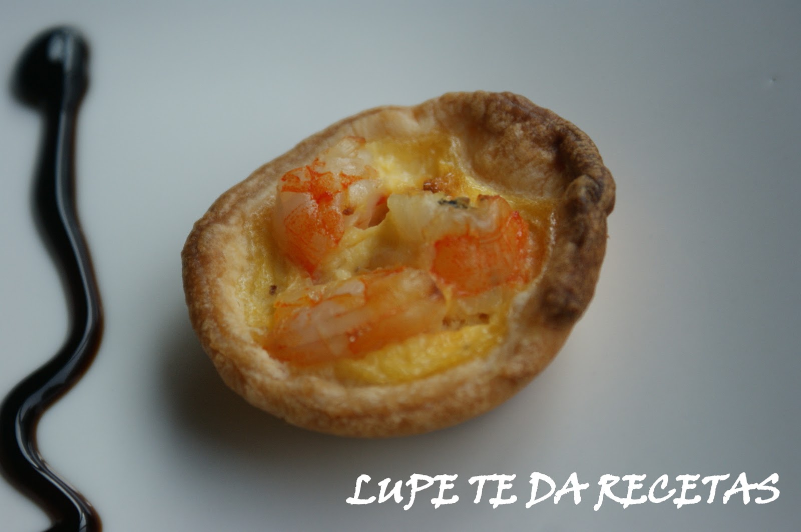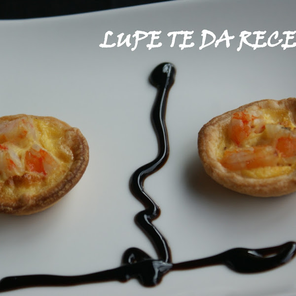 Sobre las tartaletas poner las gambas e ir echando la mezcla. Cuajar en el horno a 200º 12 minutos o hasta que este cuajado el líquido.