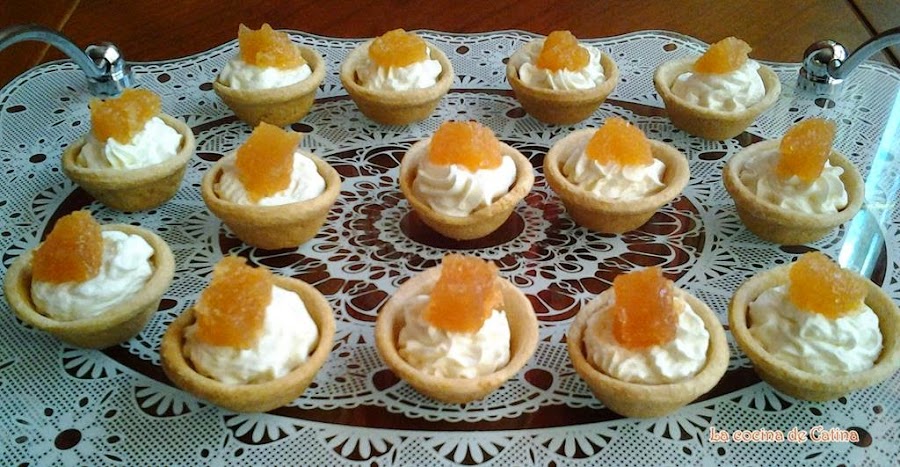Preparación:Ponemos el queso en una manga pastelera con boquilla rizada, rellenamos las tartaletas y le ponemos un trocito de membrillo por encima.
