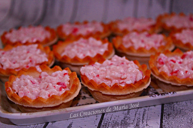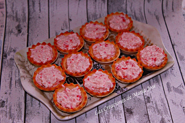 Trituramos los palitos de cangrejo con la mahonesa y rellenamos las tartaletas.