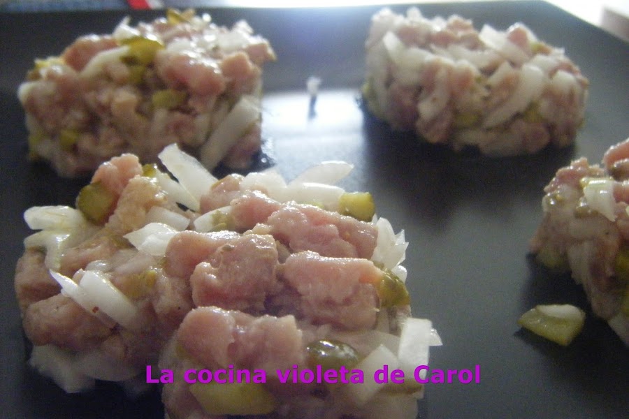 Me preguntaron por la receta y les comenté lo que llevaba y les dije que también estaba en el blog, pero al releerla luego me di cuenta de que la publicada no era la misma versión que había hecho ese día y que preparo últimamente, sino otra versión, pincha aquí si quieres ver la versión antigua, pero te diré que para mi gusto la que te dejo hoy es más sencilla y está más rica, además a mi marido que no le gustaba el tartar...ésta le encanta.