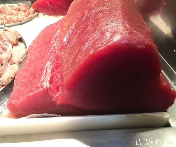Mirad el atún del que compré el trozo para hacer mi tartar de atún, ¡vaya pinta! rojo, fresco, terso...impresionante.