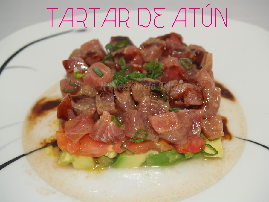 Con ayuda de un aro de empatar montamos el Tartar, primero el aguacate, luego el tomate y por último el atún y decoramos con el tallo de cebolleta finamente cortado y con la reducción de Vinagre de Módena. Serviremos inmediatamente.
