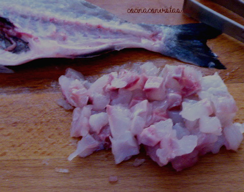 1 dorada limpia de piel y espinas cortada en cubos pequeñitos.