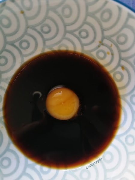 ELABORACIÓN: Ponemos la yema de huevo de codorniz en salsa de soja. Araceli la cura 5 minutos en sal y azúcar por partes iguales, podéis hacerlo como más os guste.