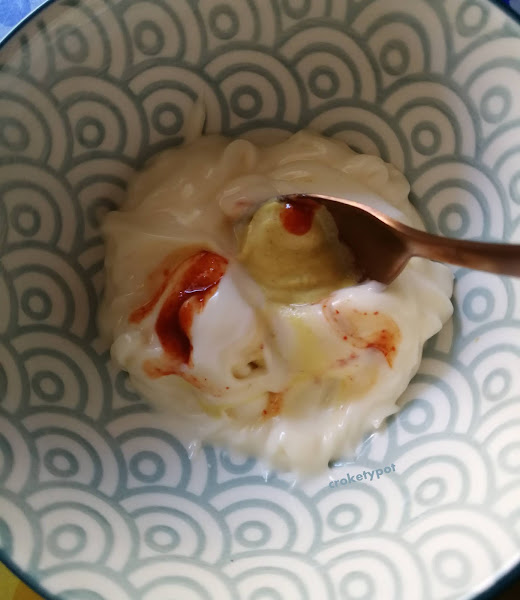 En un cuenco preparamos el resto, ponemos tres cucharadas de mayonesa, la mostaza y la siracha a gusto, no hay que pasarse por que el salchichón ya lleva pimienta.