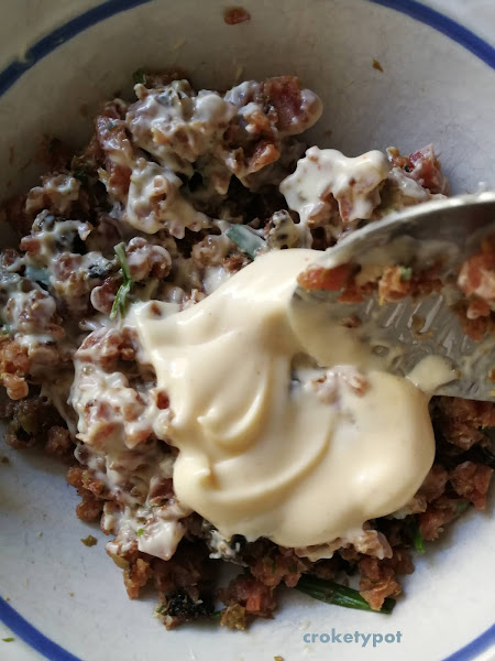 Mezclamos la salsa y añadimos el picado de salchichón hasta que nos quede untuoso.