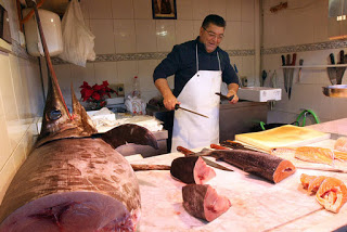 He de confesar eso sí, que soy muy exigente en cuanto a la calidad y frescura del salmón, que sólo lo compro única y exclusivamente en mi pescadería de confianza, en el Mercado de Huelin, concretamente en el puesto de “Salvador”…..