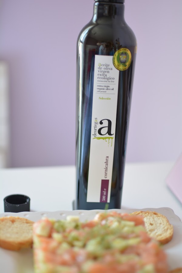 En este caso, para nuestro tartar hemos utilizado un cornicabra Deortegas de la cosecha de 2017 que marinaba estupendamente con el aguacate y el salmón.