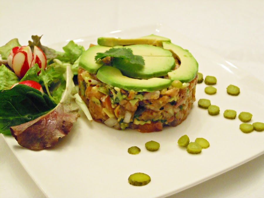 Este tartar de salmón fresco y ahumado, con aguacate y varios ingredientes más se lo he robado a Blanca de Menjar a Cala Blanca; estamos en el último domingo del mes y toca el reto Asaltablogs, ese reto en el que entramos en la cocina de un compañero y nos llevamos la receta que más nos guste.