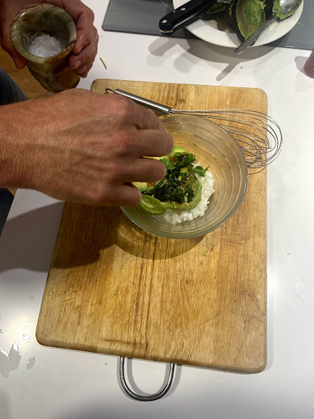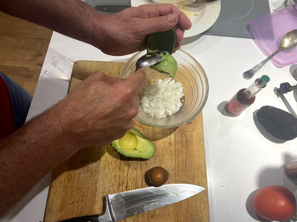 Añadimos unas gotitas de lima o limón para evitar la oxidación.