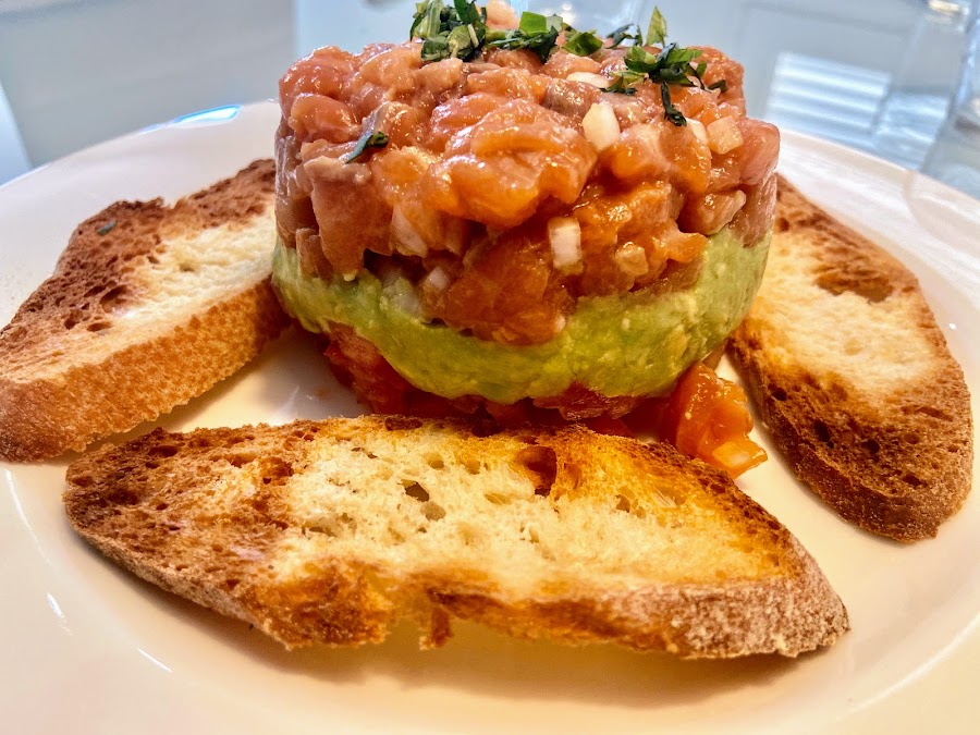 Acompañamos el tartar con unas rebanadas de pan tostado.