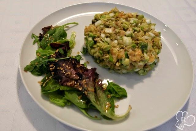 Para hoy, os presento este magnífico entrante, que nos preparo mi hermana mediana para la comida familiar del 1 de enero en su casa, nada más ni menos que un tartar de salmón. Estaba tan bueno, que para la comida de Reyes, le pedimos que volviera a prepararlo, nos encanto a todos... y no es de extrañar, es una verdadera exquisitez. Como no me quiero enrollar más, os dejo ya con la receta para que os animéis a prepararlo.