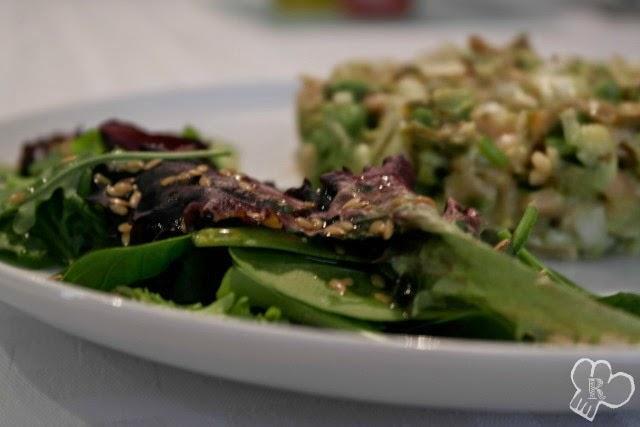 - Podéis acompañarlo con unas pocas hojas de brotes tiernos, aliñados con un poco de vinagre de módena, aceite de oliva virgen extra, sal, y sésamo al gusto.