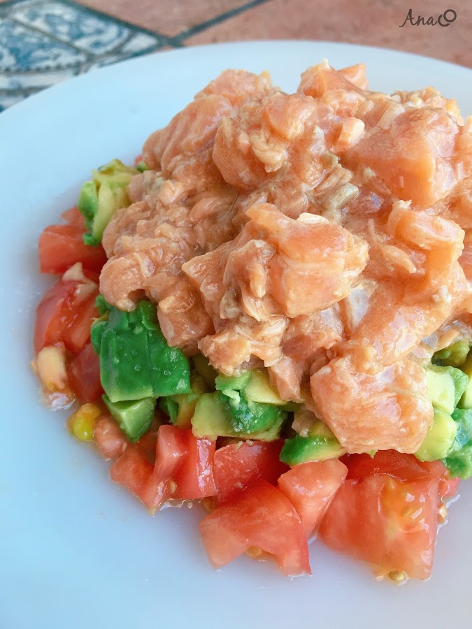 La receta que os traigo hoy es una de mis preferidas. Para los que no lo sabéis, a estas alturas dudo que seáis muchos, el tartar es uno de mis platos preferidos. Simplemente es una preparación de carne o pescado crudo con condimentos o salsas varias. El que prepararemos hoy es de salmón y lo acompañaremos con aguacate y tomate fresco.