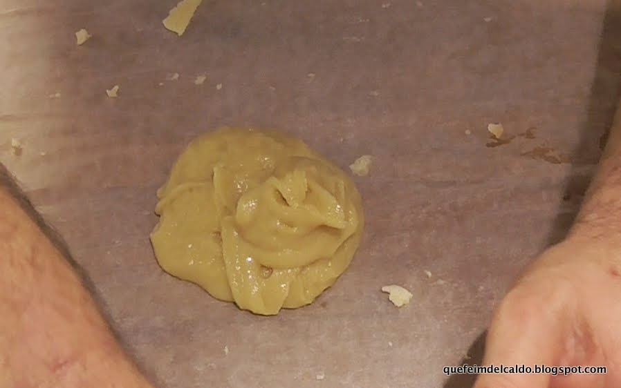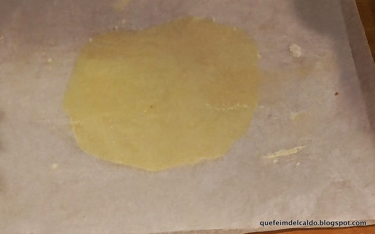Transcurrido el tiempo de reposo ponemos un poco de masa sobre papel de horno.