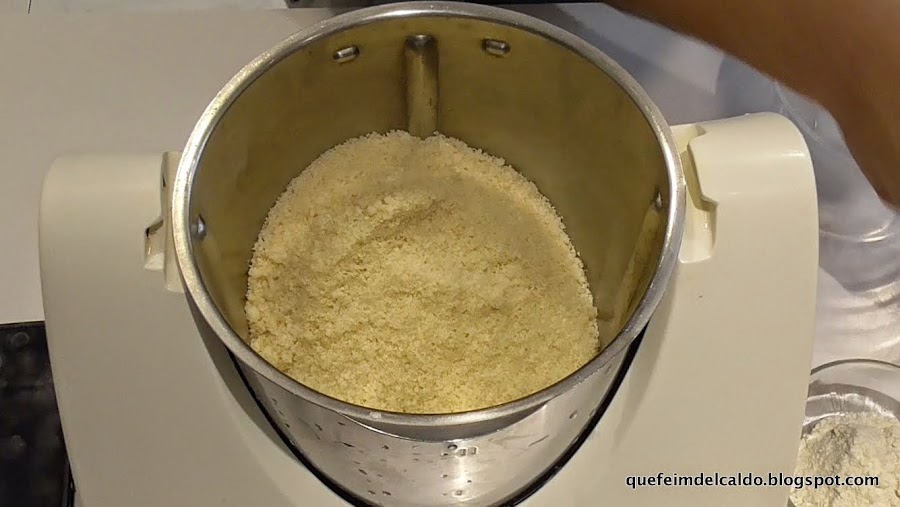 Para ello en el vaso de la thermomix ponemos el azucar y la almendra molida, ponemos a velocidad 5 durante 10 segundos.