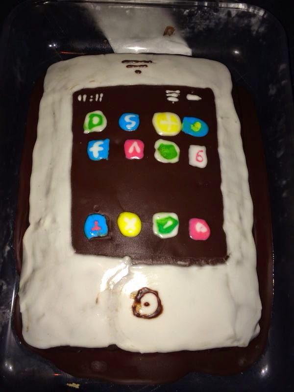 Hice una con forma de teléfono para mi marido porque es un forofo de la tecnología.
