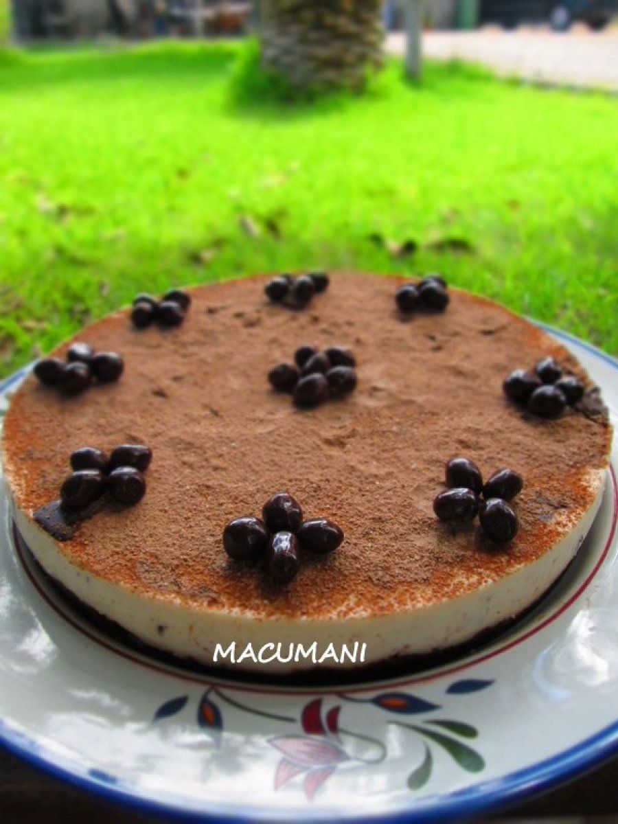 En esta tarta se necesita tan sólo un poco de calor para calentar la nata (crema de leche) que lleva la receta y que se mezcla con unas hojas de gelatina. Otros ingredientes que se usan para hacer esta tarta del blog Recetas de Macumani, son galletas trituradas, mantequilla y chocolate puro para la base. Luego, la crema lleva yogur, leche condensada y la nata (crema de leche) con la gelatina, así como pedacitos de chocolate. Se conserva en el congelador y para servir se espolvorea con cacao en polvo.¿Tienes alguna receta más de tarta helada para compartir?