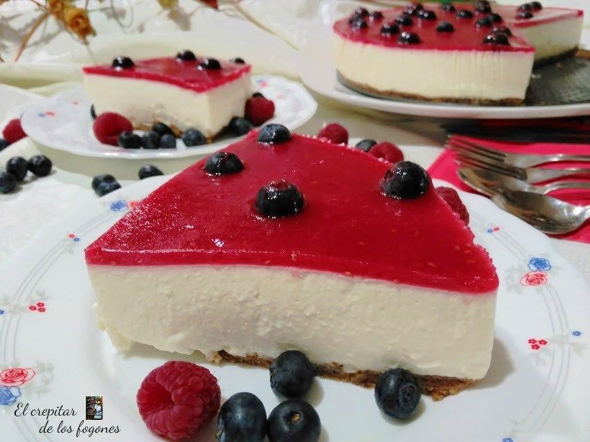 Mi amiga Merche también se apunta a la fiesta y nos regala una auténtica delicia «Tarta mousse de yogur griego, mango y frambuesas».